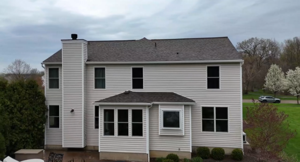 For this vinyl siding installation project we undertook in Avon, Ohio – close to home for Maddocks Construction – we worked fast as a unified team and left our customer satisfied. You’ll notice what looks like a chimney on the left-side of the home? This isn’t a real chimney – it’s actually duct work for the furnace. Some inquisitive people have asked if special siding is needed to cover chimneys due to the heat put-out by fireplaces and what not? No, normally not needed because the chimneys are insulated well to begin with!